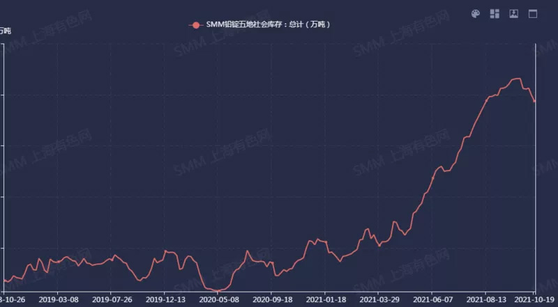 庫(kù)存方面,據(jù)SMM數(shù)據(jù)顯示,自4月底以來(lái),國(guó)內(nèi)鉛錠庫(kù)存便一直處于持續(xù)累庫(kù)階段,接連刷新自2014年以來(lái)的歷史高位。但國(guó)慶節(jié)前在虧損、限電、環(huán)保等的綜合影響下,原生鉛、再生鉛和鉛蓄電池板塊整體供應(yīng)減量大于消費(fèi)減量,因此9月底鉛錠得以小幅去庫(kù)。截止10月19日,SMM鉛錠五地社會(huì)庫(kù)存總計(jì)19.39萬(wàn)噸,較9月24日庫(kù)存高點(diǎn)去庫(kù)2.21萬(wàn)噸,降幅11.4%。